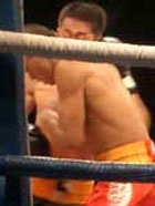 После 3 раунда. Эмиль не может подобраться на свою дистанцию. Пару раз попал в голову китайцу, но попал на бросок. Бой равный. Эмиль бъет жестко, но часто не достает.